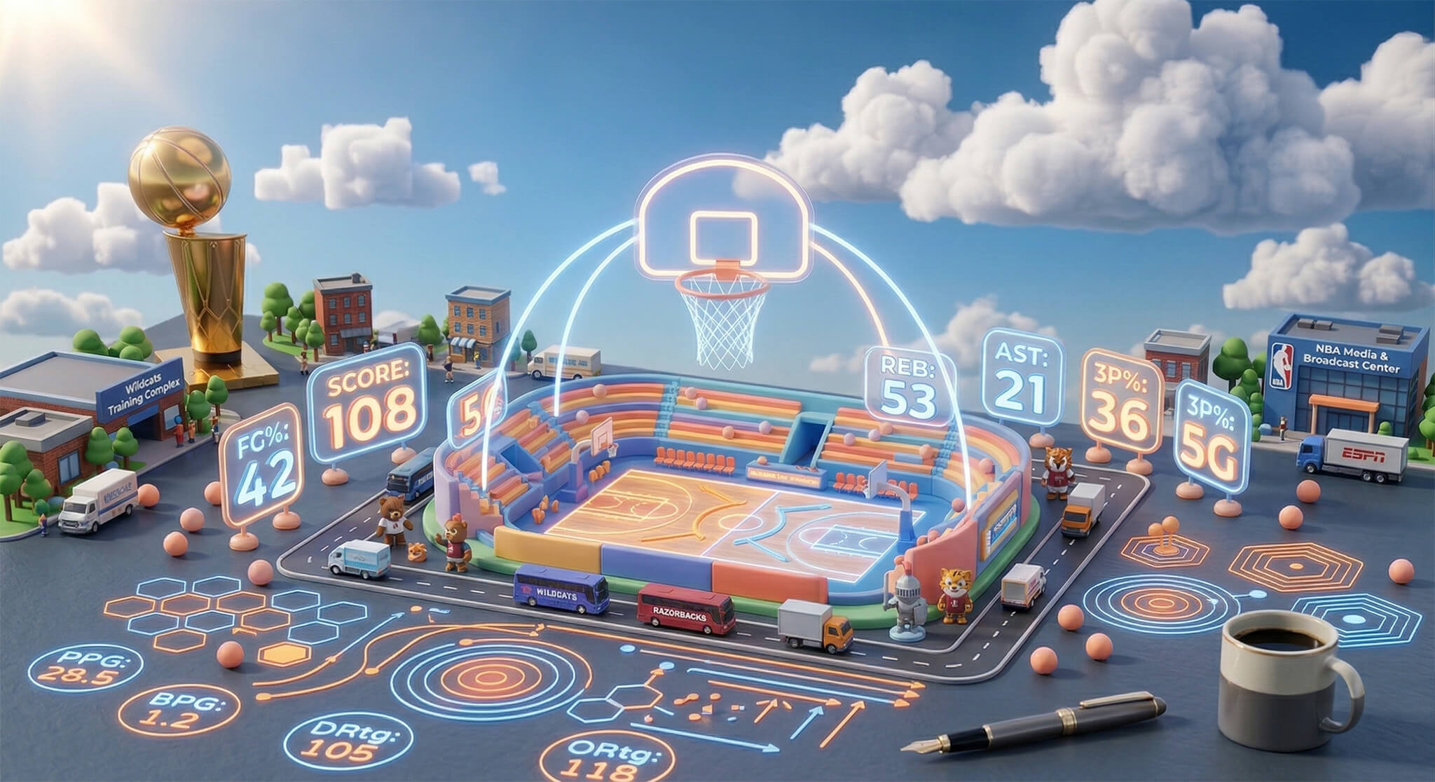 在現代籃球的戰術演進中,外線火力的發揮與高效的進攻組織已成為決定比賽走向的絕對關鍵。有鑑於此,我們的「NBA 每日戰情室(Daily War Room)」致力於將球場上的每一次流暢傳導與精準投籃,轉化為深度的即時數據面板。在這裡,我們不僅為您呈現最即時的總比分與節次得分,更在數據看板上即時追蹤決定勝負的關鍵指標。您可以隨時檢視各隊的整體投籃命中率(FG%),評估其在陣地戰與快攻中的進攻把握度;緊盯作為現代籃球勝負晴雨表的三分球命中率(3P%),掌握球隊外線火力的爆發潛能;同時,透過場均得分(PPG)與團隊助攻數(AST)的即時反饋,您能更宏觀地分析球隊的進攻火力上限與戰術流暢度。數據會說話,而我們為您精準翻譯球場上的每一個密碼。